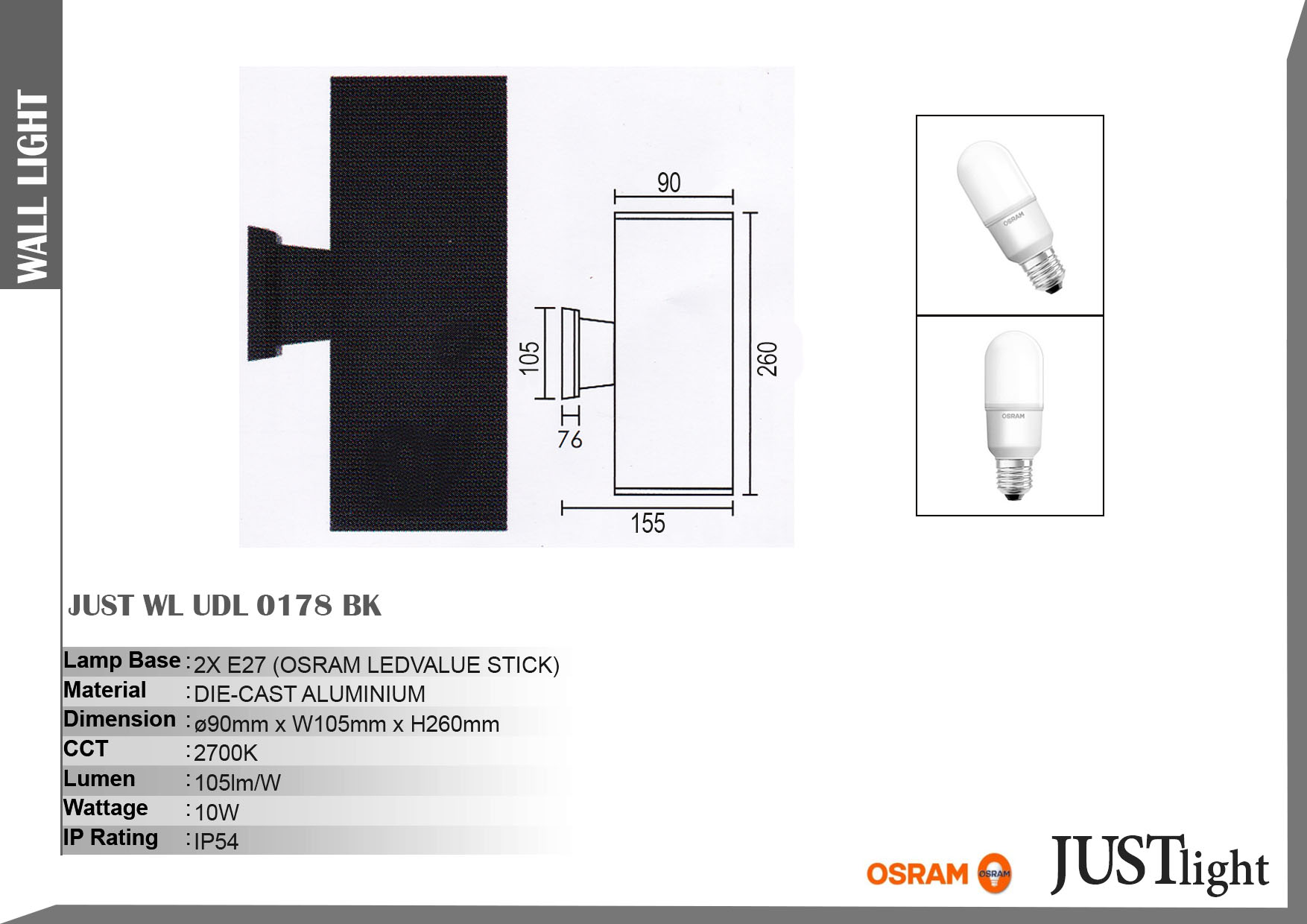L90 mm * W105mm * H260mm